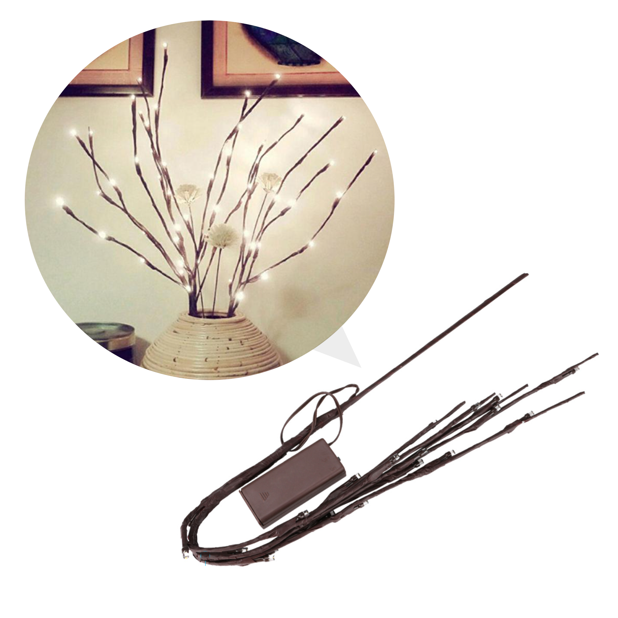 20 LED lights (5 branches on each stem, 4 LED lights on each branch)